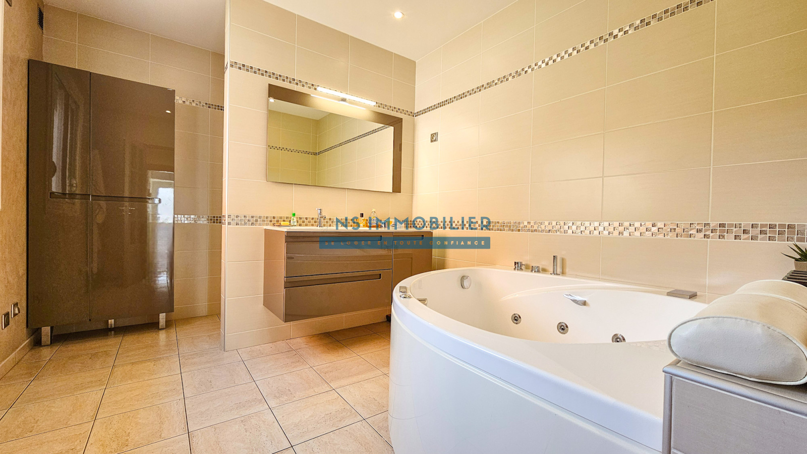 Au rez-de-chaussée : deux chambres, un dressing, une salle d'eau avec baignoire jacuzzi/balnéo,