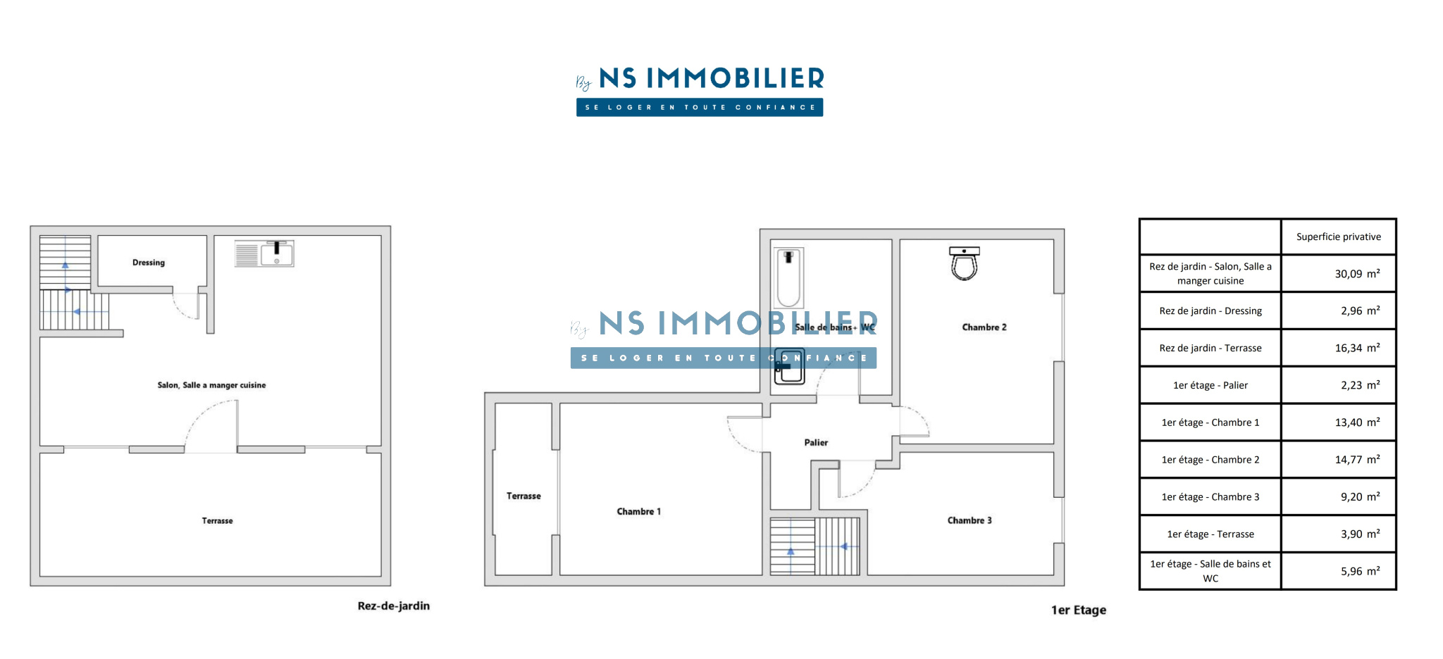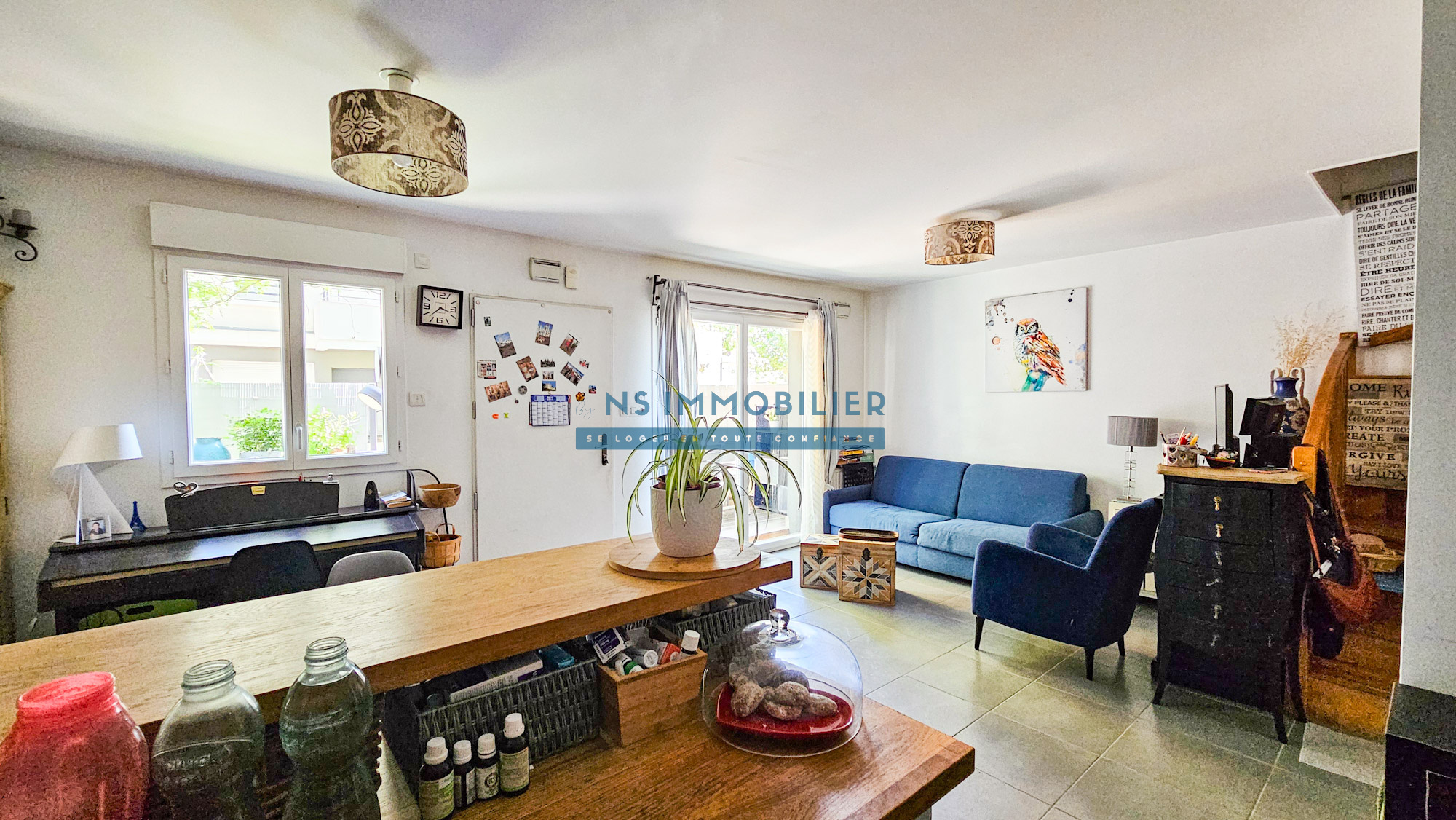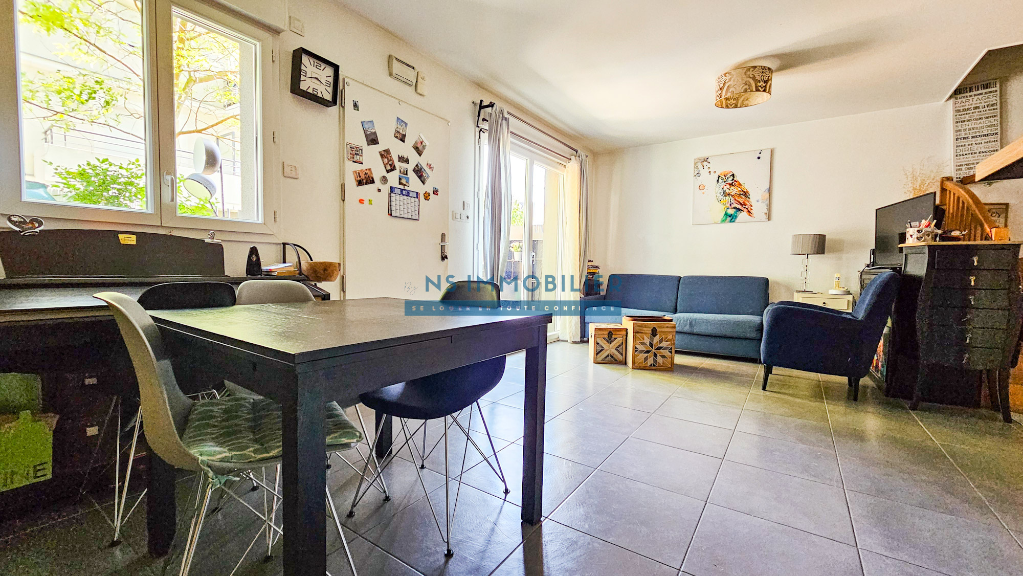 ** Rare sur le secteur - PROCHE GARE ** Votre agence BY NS IMMOBILIER a le plaisir de vous présenter cette belle maison de ville de type F4 en DUPLEX située en rez-de-jardin, dans une copropriété calme et sécurisée (avec une entrée individuelle), comprenant : Une entrée avec un spacieux séjour/salle à manger, une cuisine entièrement aménagée et équipée ouverte donnant sur sa terrasse et son jardin privatif, une buanderie,