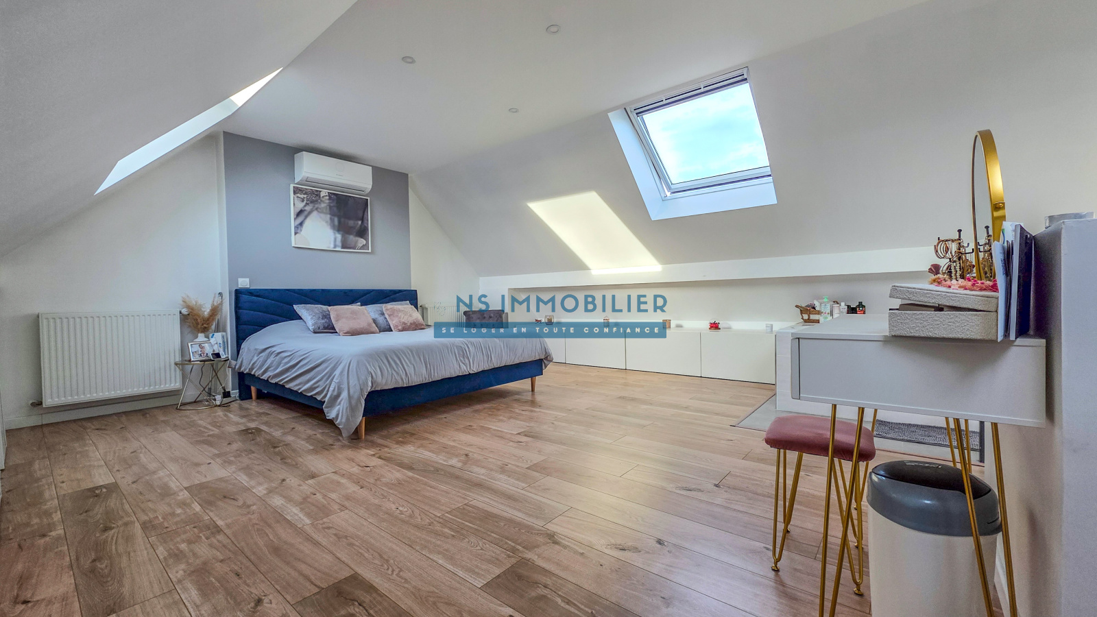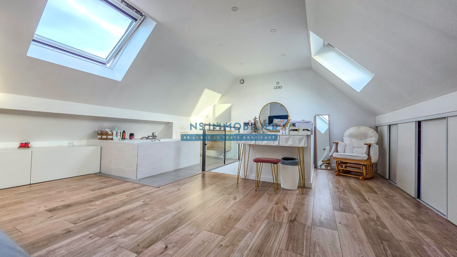 Au dernier étage : une suite parentale avec baignoire et rangements,