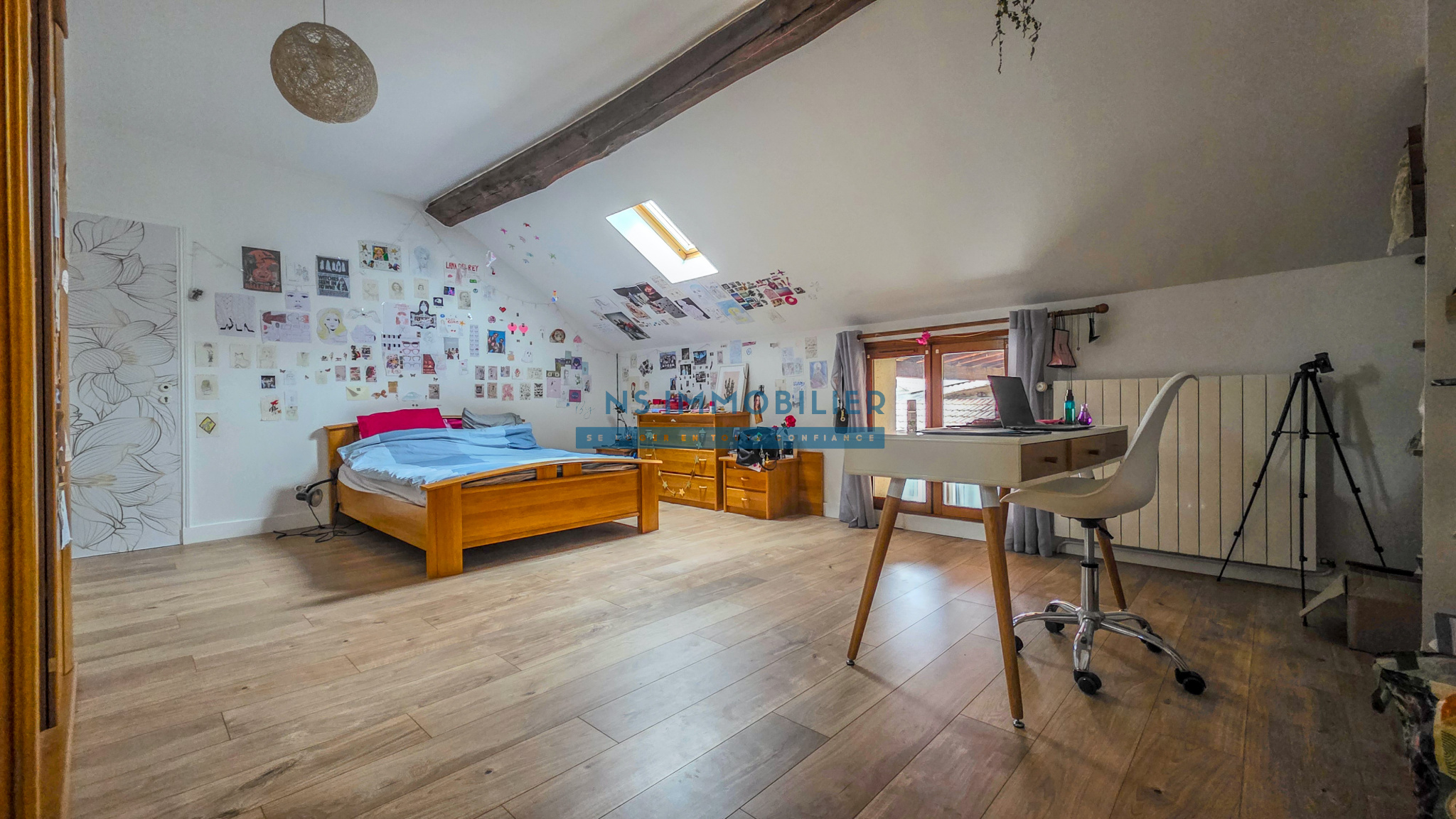 Au dernier étage : un bureau et une chambre sous combles,